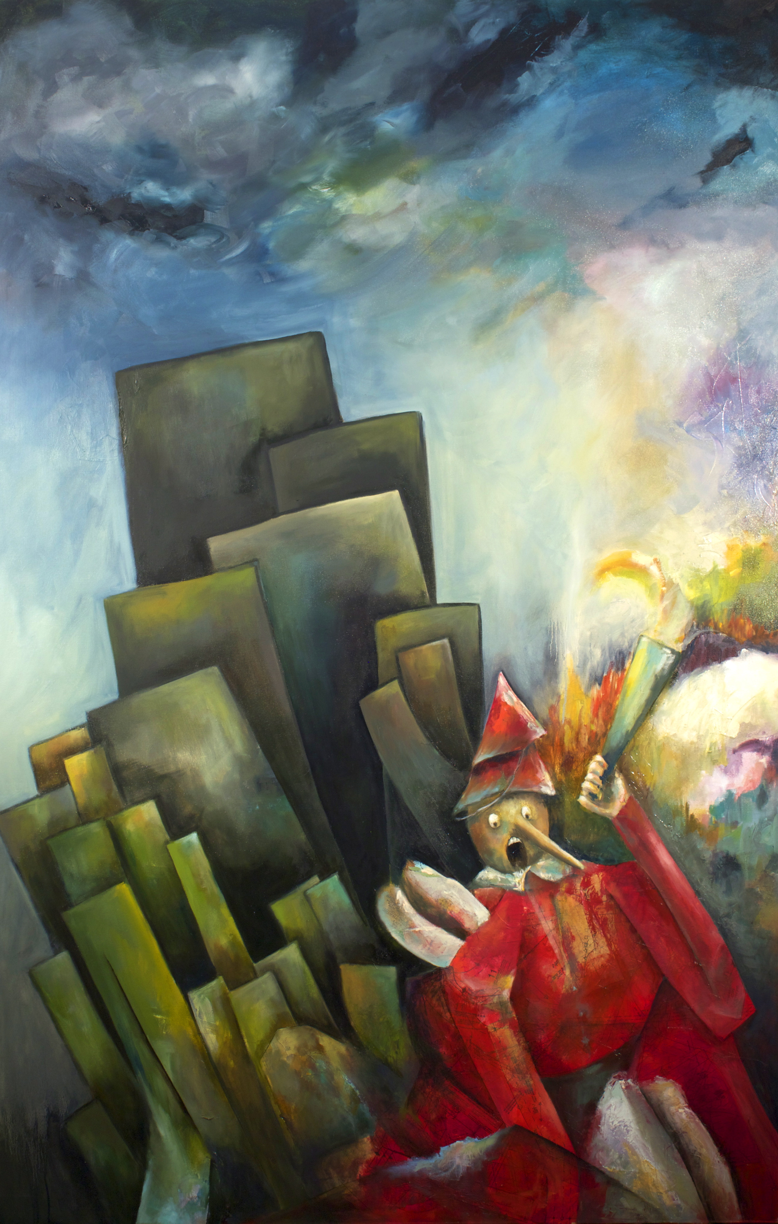 Lies We Tell Ourselves medium: oil and mixed media on canvas size: 96″ x 60″ Lies We Tell Ourselves Share this: Click to email a link to a friend (Opens in new window) Email Click to share on Facebook (Opens in new window) Facebook Click to share on X (Opens in new window) X Click to share on LinkedIn (Opens in new window) LinkedIn Like Loading... Related Posted on June 30, 2013May 23, 2014 Posted in UntitledTagged art, canvas, disorientation, fables, home, journey, ley, lies, macey, oil, painting, pinocchio, place, recent work, stories
